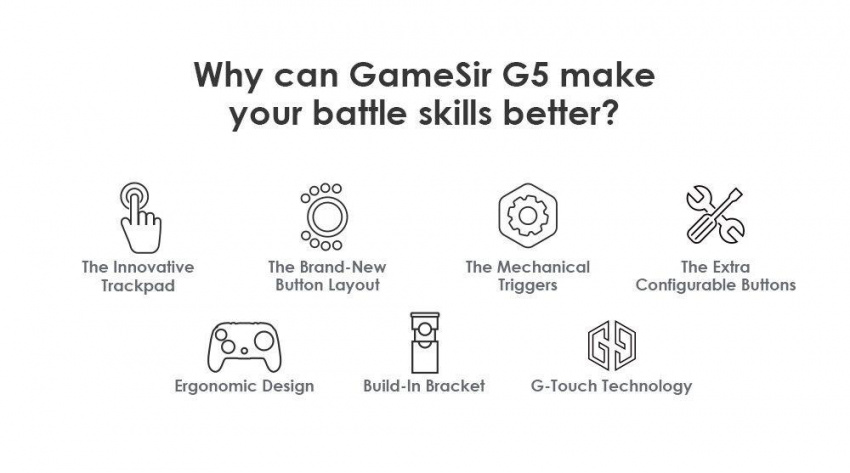 Designed for mobile MOBA and FPS games, GameSir G5 combines many revolutionary innovations: the trackpad, surrounding button layout and extra configurable buttons. If you are a mobile gamer who loves battling online, GameSir G5 will be your ultimate secret weapon to win.