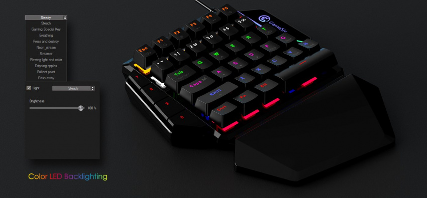 Enjoy the colorful key backlit effect with 8 pre-configated profiles and the LED light bar on the right side of the unit. The backlit is adjustable in colors and brightness, select your favorite lighting configuation!