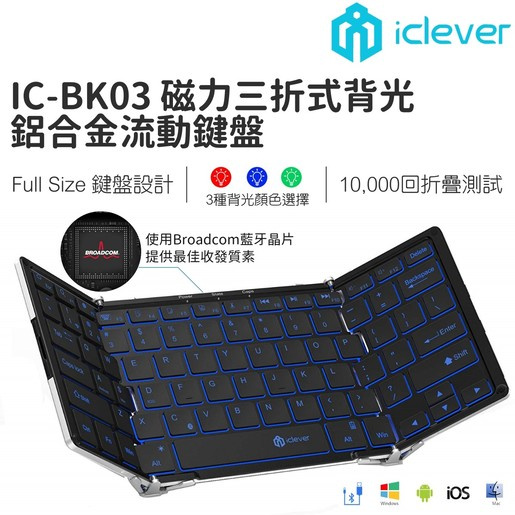 可折疊的標準尺寸全鍵盤可提供用戶友好的打字體驗。三折設計,便於攜帶iOS,WINDOWS和ANDROID兼容性:內置Broadcom BluetoothiClever超薄三折式藍牙鍵盤,帶LED背光燈,適用於大手指和小手指,穩定的連接和快速響應,帶給您完美的旅程。 您可以快速適應此新型鍵盤,以實現流暢,舒適的打字模塊,操作範圍為10米(適用於iOS Windows)Android智能手機PC平板電腦