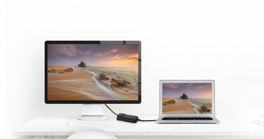 A compact, lightweight solution for traveling business associates using USB 3.0-capable laptop PCs, enabling connection to a secondary display or projector.