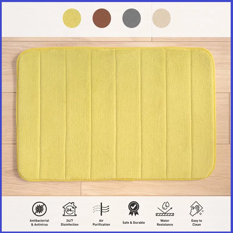 由超柔軟的珊瑚絨製成,有創新的記憶綿。它非常柔軟,給您的雙腳帶來舒適感。背面防滑 PVC 橡膠,防水,完美用於硬木地板或地墊,防水防潮無煩惱。防滑橡膠底座可確保地墊牢牢抓住地板以確保安全。非常適合您的浴室或任何室內的房間門前。