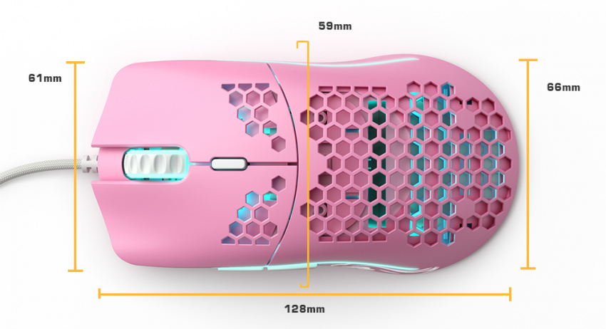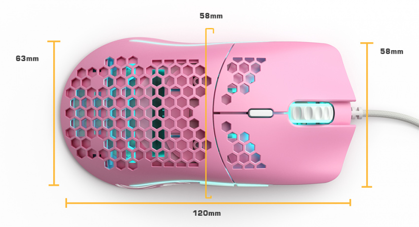 Shape and size are important when selecting your mouse. Below are the measurements of the Model O and O-.