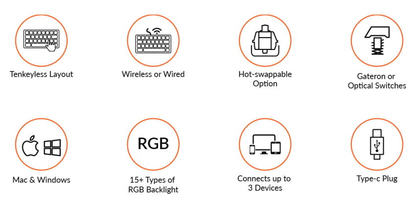Tenkeyless 佈局是機械式鍵盤中最受歡迎的佈局之一。它尺寸緊湊,可輕鬆存取 Mac 和 Windows 的所有基本多媒體和功能鍵。