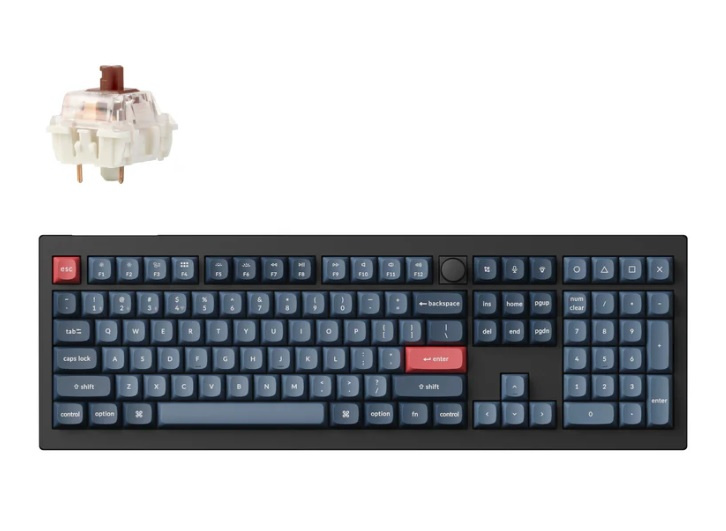 Keychron V6 Max 在設計時充分考慮了 Mac 用戶的體驗,同時仍保留了對 Windows 裝置的兼容性,配備了系統切換開關和一組適用於 Windows 和 macOS 系統的額外自訂鍵帽。現在您可以在鍵盤上儲存兩種不同的佈局,每個系統一種。