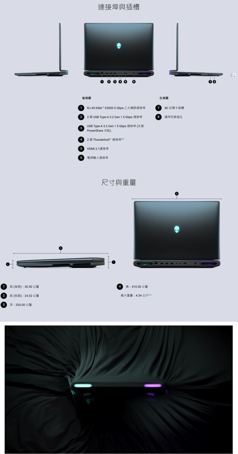 18.0吋 QHD+ 300Hz 3ms 100% DCI-P3, 500 nit, ComfortView+, NVIDIA G-SYNC + Advanced Optimus, FHD 攝像頭
