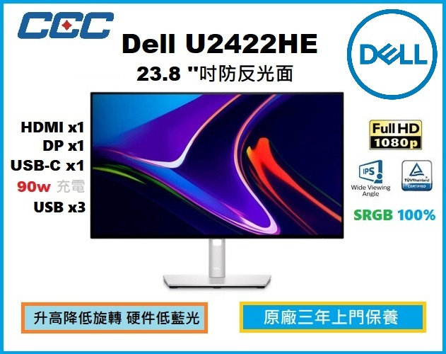 秉持健康的設計理念:透過 ComfortView Plus (一律開啟的內建低藍光螢幕),可減少藍光放射,同時提供優異的色彩i。