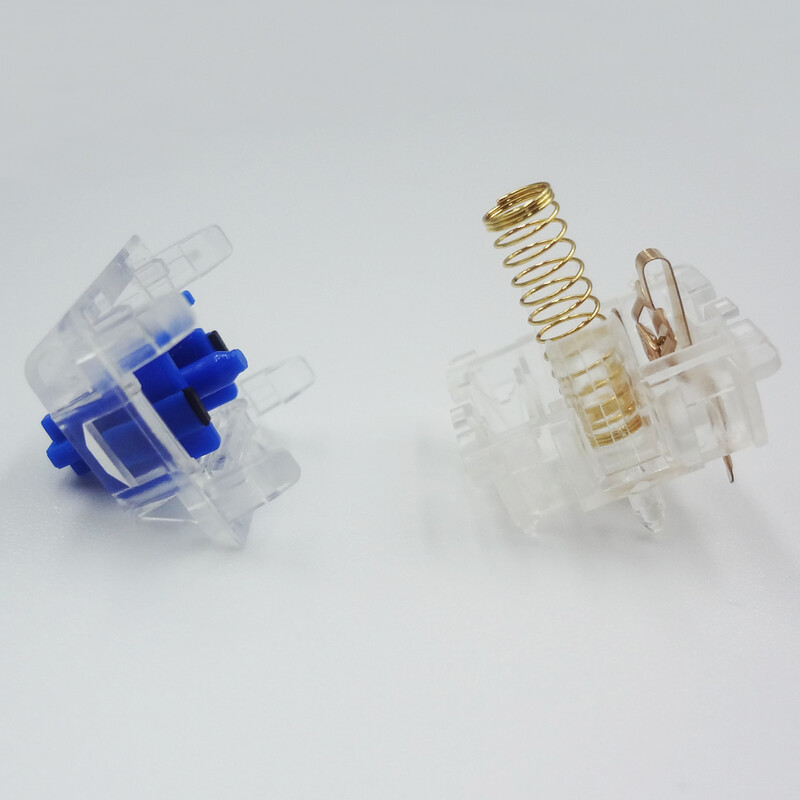 Durock海豚靜音線性開關62g鍍金彈簧透明外殼經典藍色閥桿機械鍵盤靜音開關