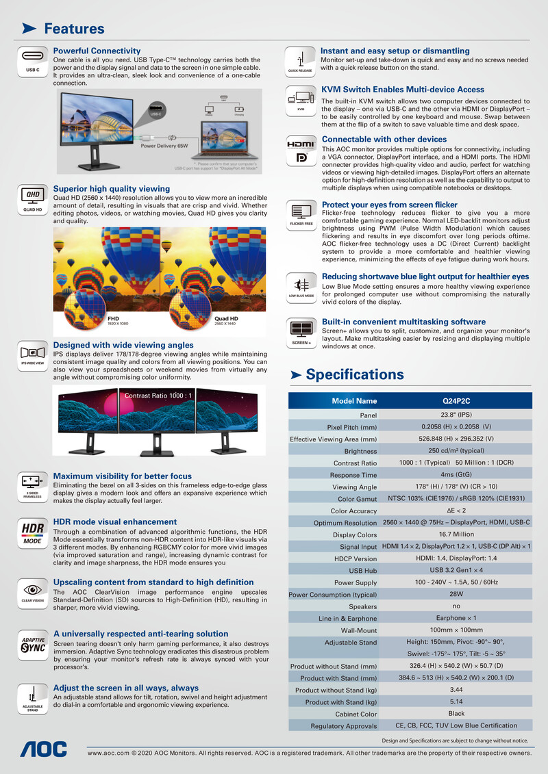 . AOC - Q24P2C 2K USB-C 顯示器 -