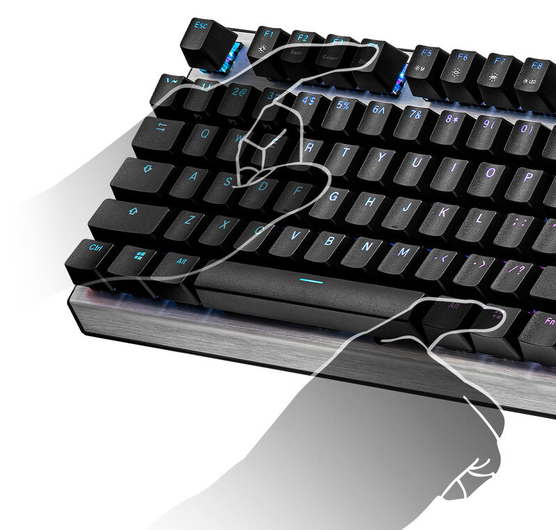 當您沉浸在工作或遊戲時,最不想做的就是按下Alt + Tab來調整鍵盤設置。CK351通過創新的On-the-Fly即時調整系統,只需按幾下鍵,即可輕鬆調整每個按鍵的背光、切換燈效模式,甚至錄製巨集。在不讓系統負載加重的情況下依然可以獲得可與軟體匹配的功能,節省了時間的同時也讓電腦擁有更多資源。