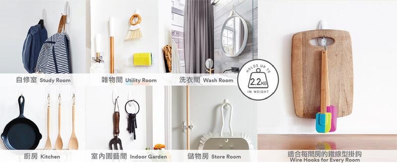 無論是在家居或辦公室,你都可以使用無痕™鐵線掛鈎令身物件井井有條。無痕™大型鐵線掛鈎可以承托2.2公斤的重量,幫助您整理空間並保持整潔。