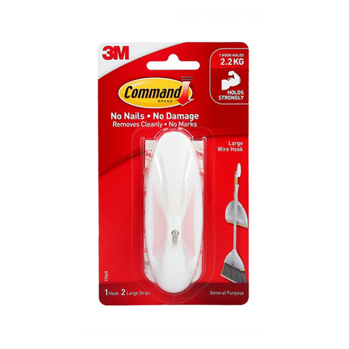 Command™無痕™大型鐵線掛鈎有助您將空間個性化,將收納和佈置需要增加功能和多用性。每個鐵線掛鈎都可穩固地固定於美耐板、金屬、瓷磚、途漆的夾板牆和玻璃上,亦可潔淨地移除而不損壞牆壁。安裝後,請等待至少1小時才使用,以達最佳效果。您可以使用無痕™鐵線掛鈎來懸掛重達5磅 (或2.2公斤) 的物件。無論是梳子、直髮器、或是裝飾品,和裝滿玩具的帆布袋,您都可以選用這款掛鈎來妥善掛起它們。