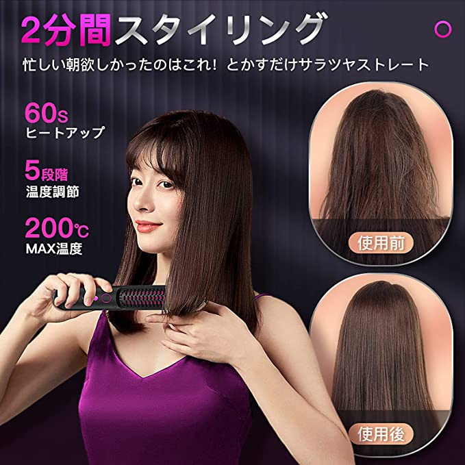 迷你尺寸的S1142熱梳幾乎和手機一樣。無線設計非常便攜。