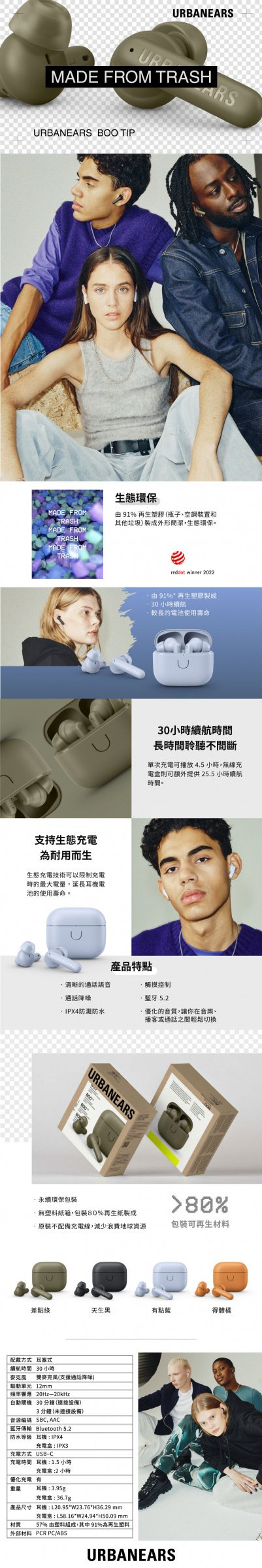 [全港免運費 行貨1年保養] Urbanears Boo Tip 真無線藍牙耳道式耳機