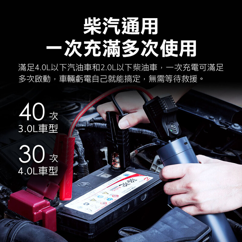 ・適用各車型,一次充電可滿足多次啟動