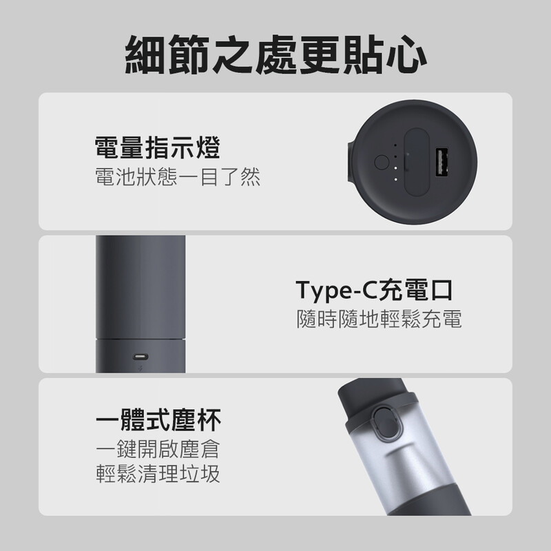 ・無線手持,隨時隨地任何場合都可清潔