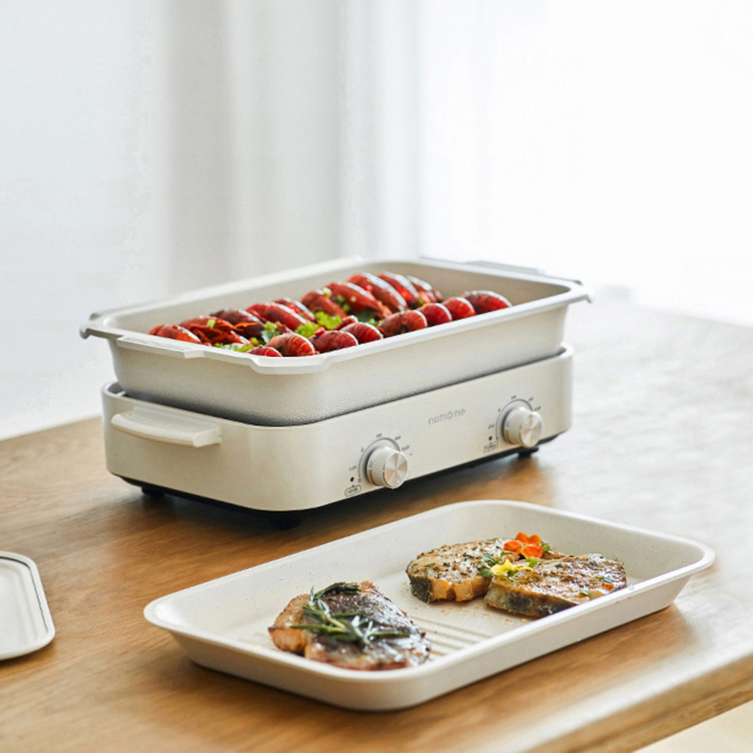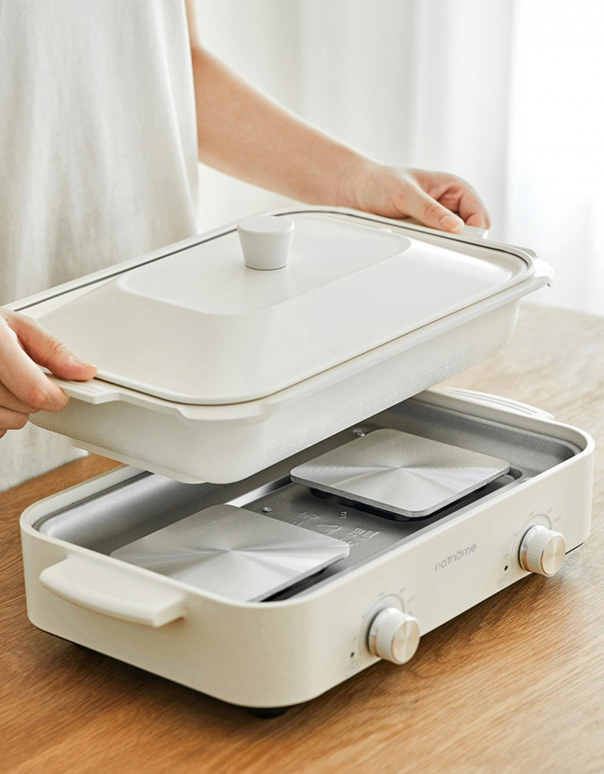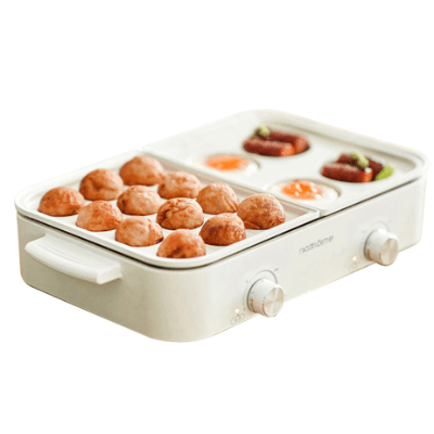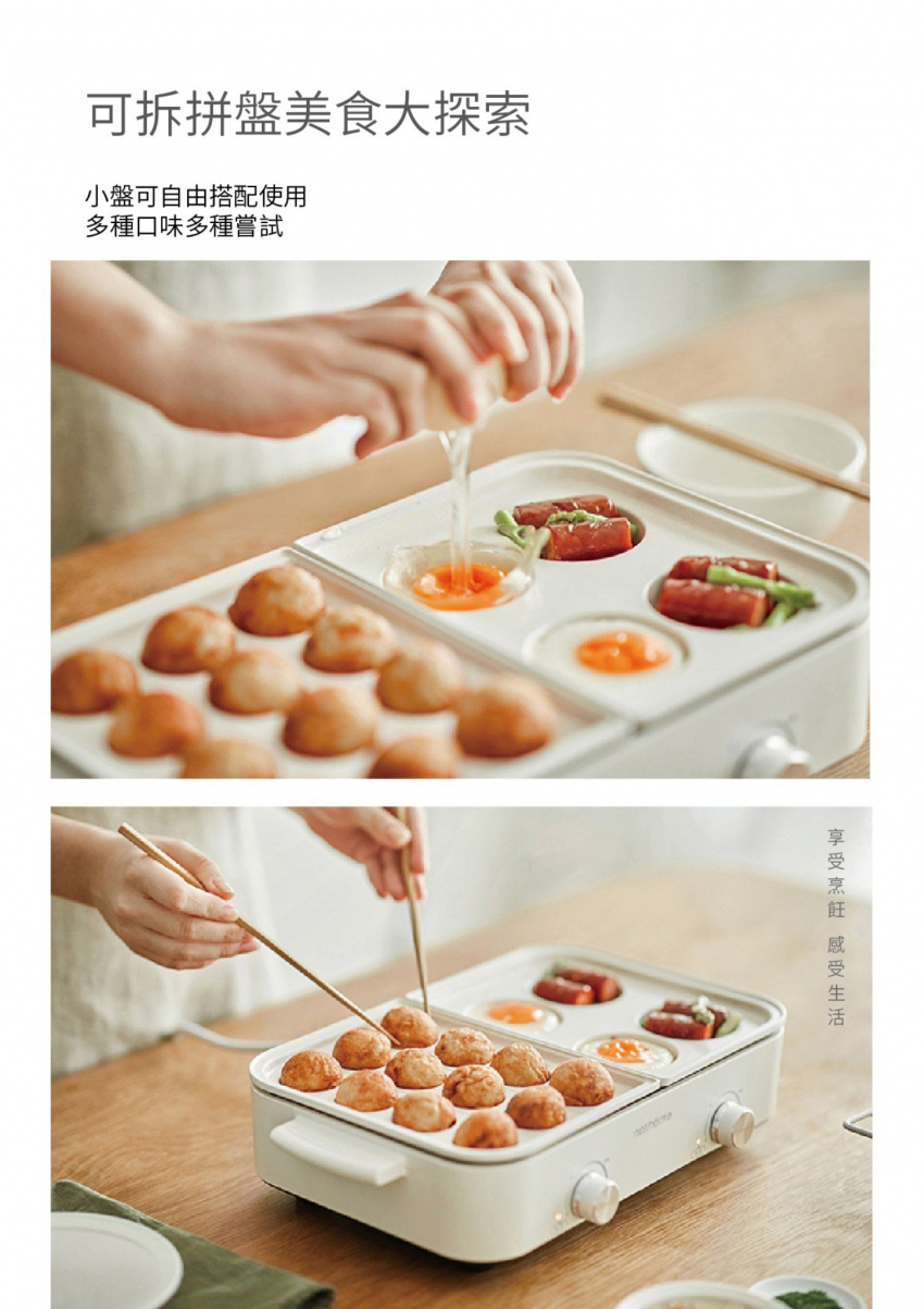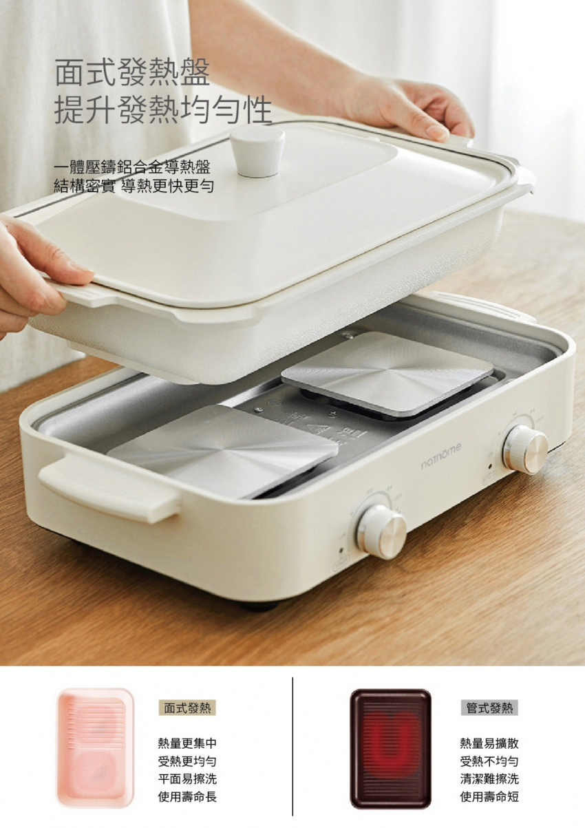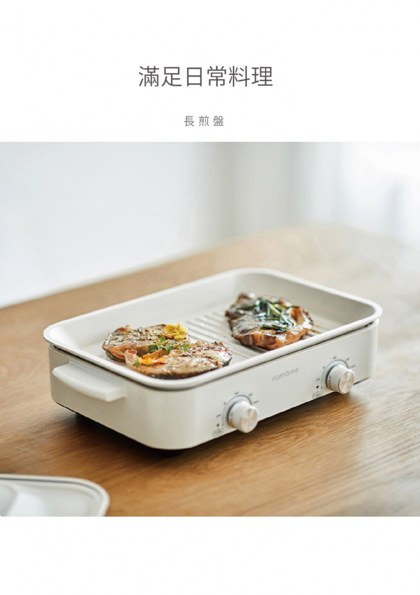 - 一鍋多能:多功能鍋靈活切換,火鍋、煎肉、小食滿足多種煮食需求,一鍋多用,配備3.5L 深鍋、長煎盤、小丸子盤及漢堡圓盤,滿足一家人的煮食需求