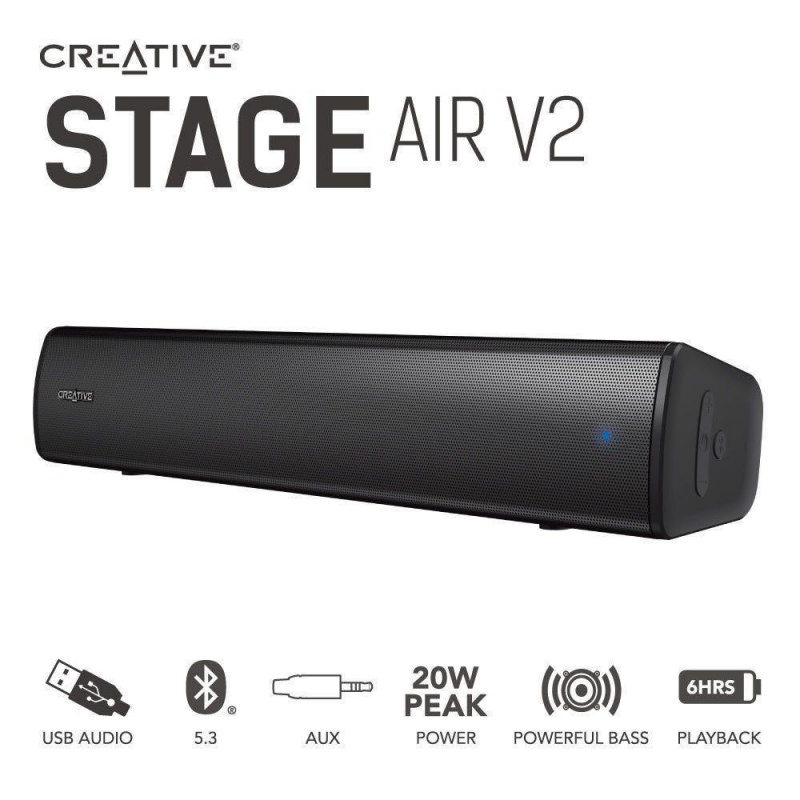 Creative Stage Air V2 專為多功能用途而設計,具有有線和無線播放功能,因此設置起來輕而易舉。