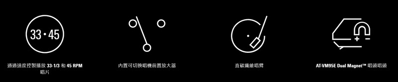 - 全手動,皮帶傳動操作,兩種速度:33-1/3 和 45 RPM