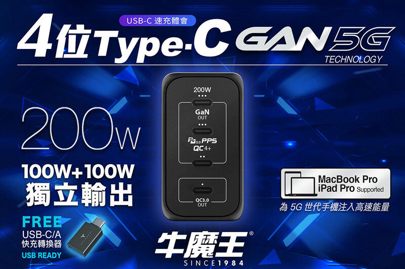- 4 位 USB Type-C,100W + 100W 獨立輸出