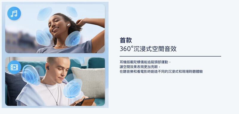 • 360°沉浸式空間音效|搭載陀螺儀能追蹤頭部運動讓空間效果表現更加亮眼,創造不同的沉浸式和現場聆聽體驗