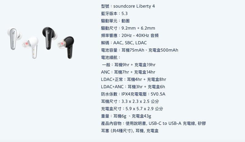 【全港免運費 行貨1年保養】Anker Soundcore Liberty 4 主動降噪真無線藍牙耳機