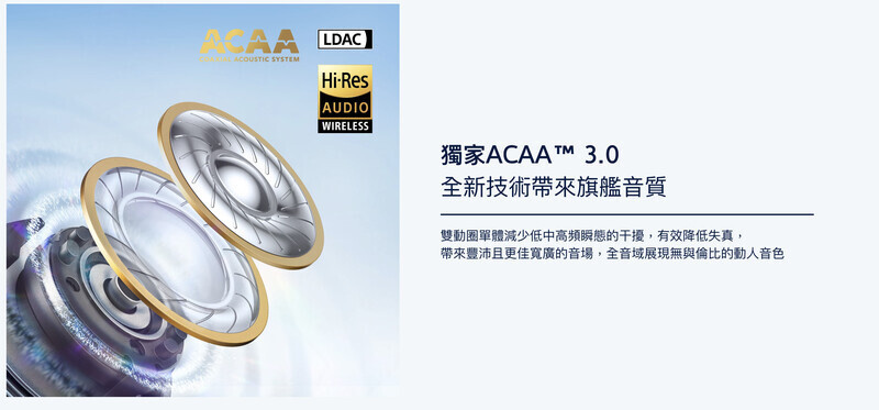 • ACAA™ 3.0 全新技術|雙動圈單體減少低中高頻瞬態的干擾,全音域展現無與倫比的動人音色