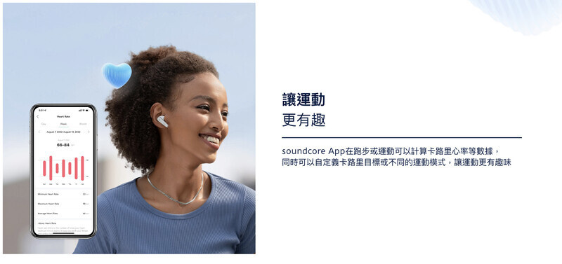 • 自定運動目標 |soundcore App在跑步或運動可以計算卡路里心率等數據,讓運動更有趣味