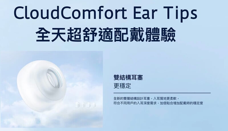 • CloudComfort Ear Tips|全新的雙層結構設計耳塞,入耳質地更柔軟,符合不同的入耳深度需求