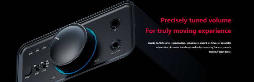 通過 ADC 曲線重構,規劃了 112 級音量,告別左右聲道偏音、噪音。音量調節也更加自然、順滑,真實還原每一個音符,無微不至。
