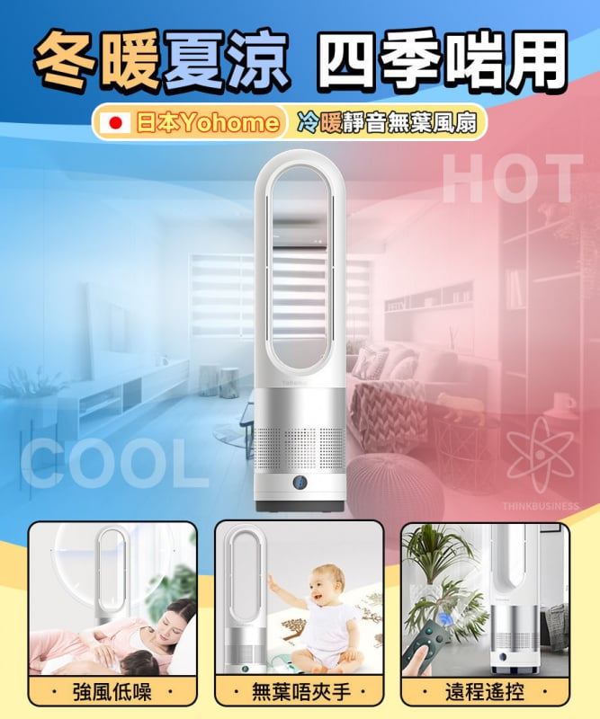 【全港免運費 行貨1年保養】Yohome 家の逸冷暖靜音無葉風扇