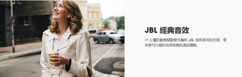11 公釐的動態驅動單元藉助 JBL 經典音效的支援,帶來無可比擬的純淨音樂和通話體驗。