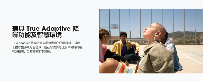 True Adaptive 降噪功能自動適應您的周圍環境,排除干擾以獲得更好的音效。或在您需要專注於環境時使用智慧環境,且都無需取下耳機。
