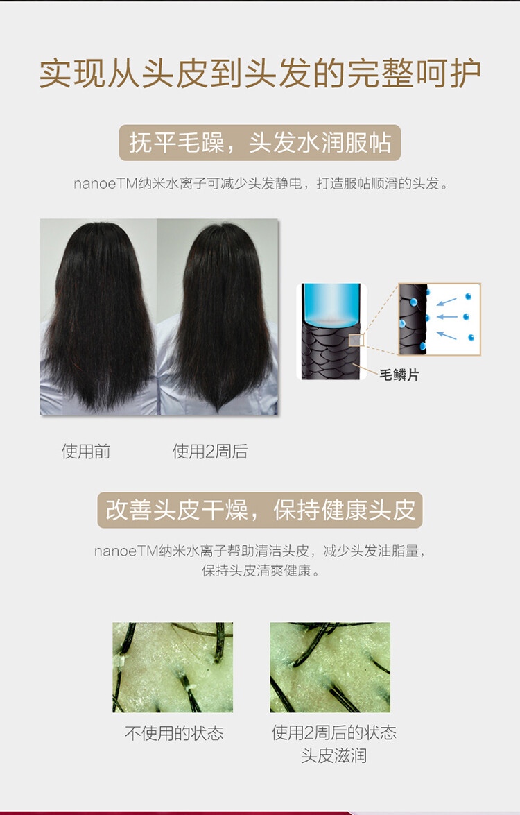 納米水離子,約1000倍的水潤呵護,綻現秀髮順滑之美