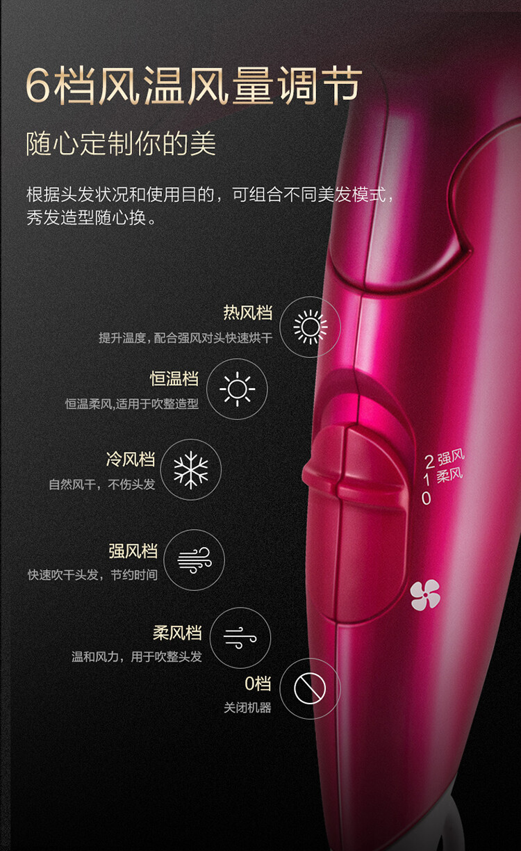 6 檔風溫風量調節,隨心定制你的美