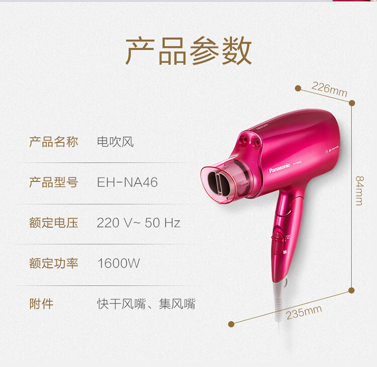 ・尺寸:226× 84× 235mm (帶快乾風嘴狀態)(寬 x 深 x 高)