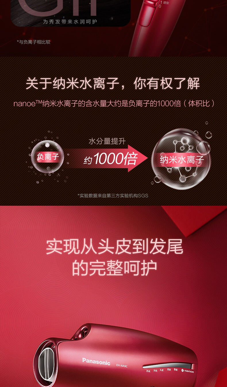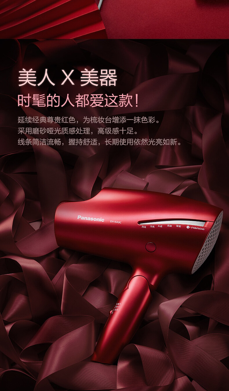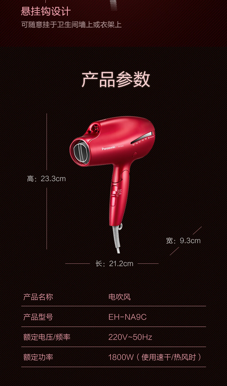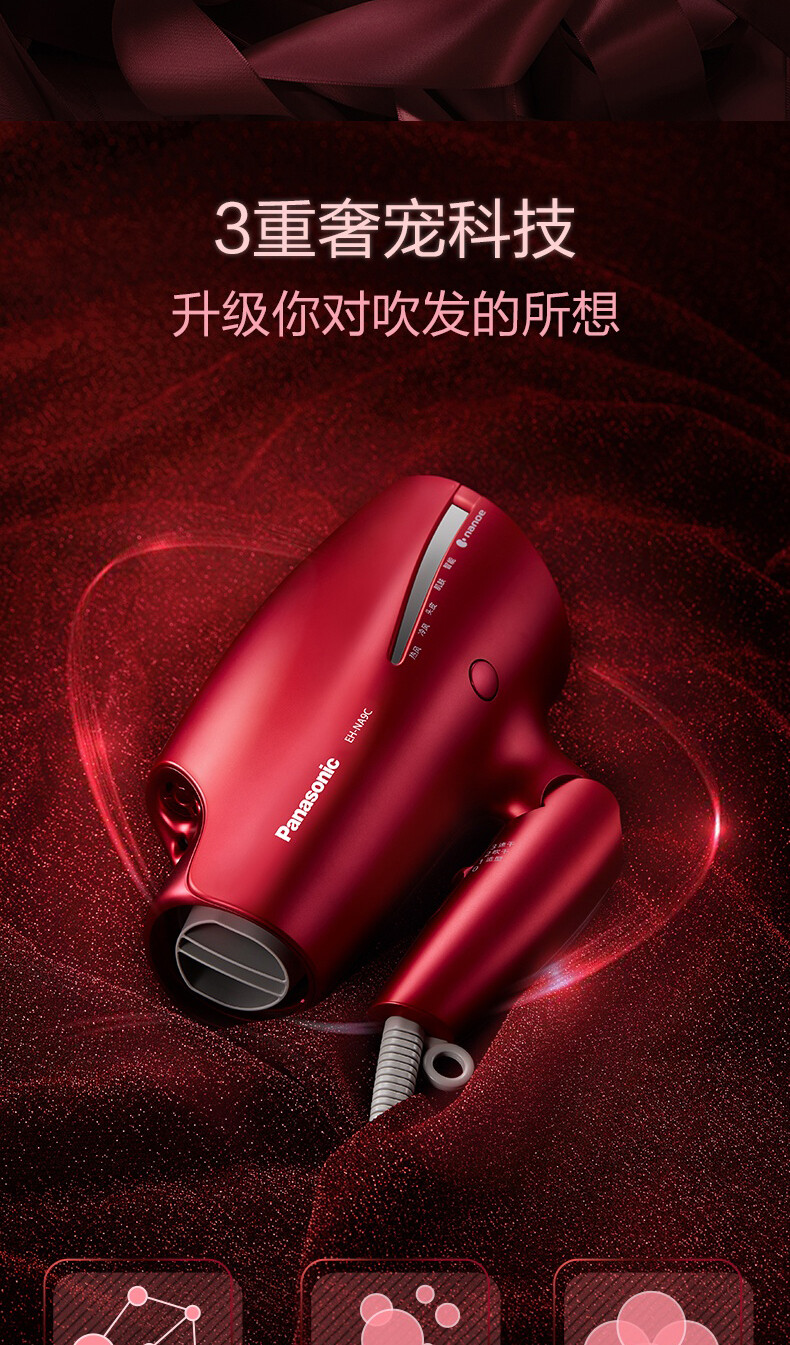 納米水離子結合冷熱風自動交替,抑制頭髮表面過熱,舒適乾髮的同時,亮澤秀發。