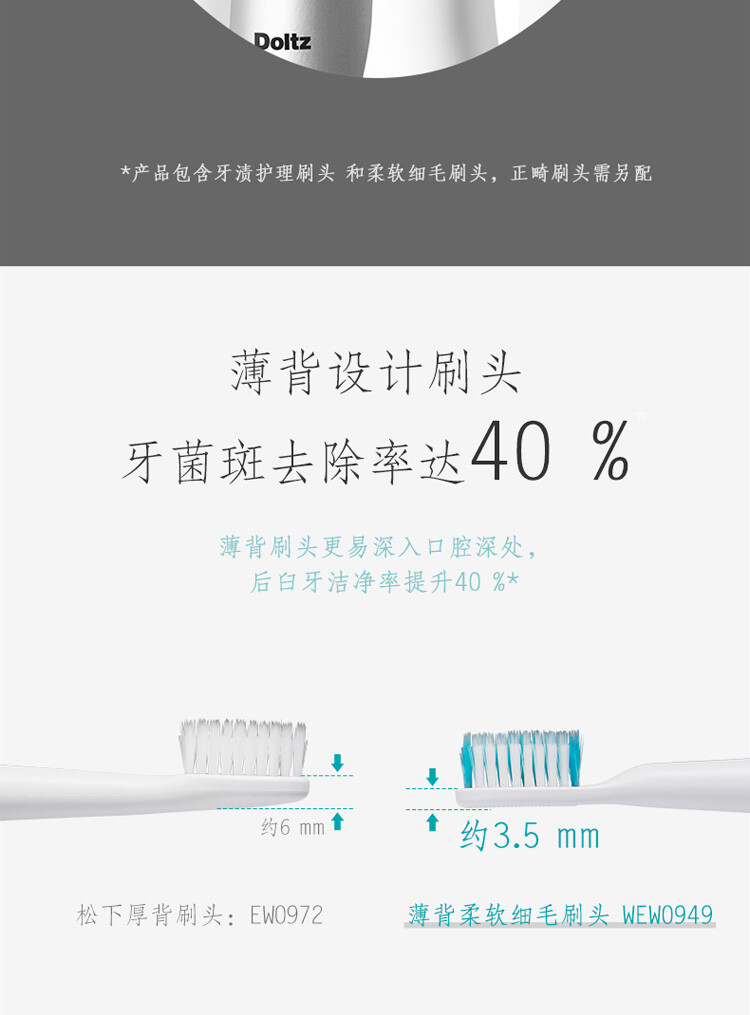 ・刷頭:薄背牙漬護理刷頭、薄背柔軟細毛刷頭