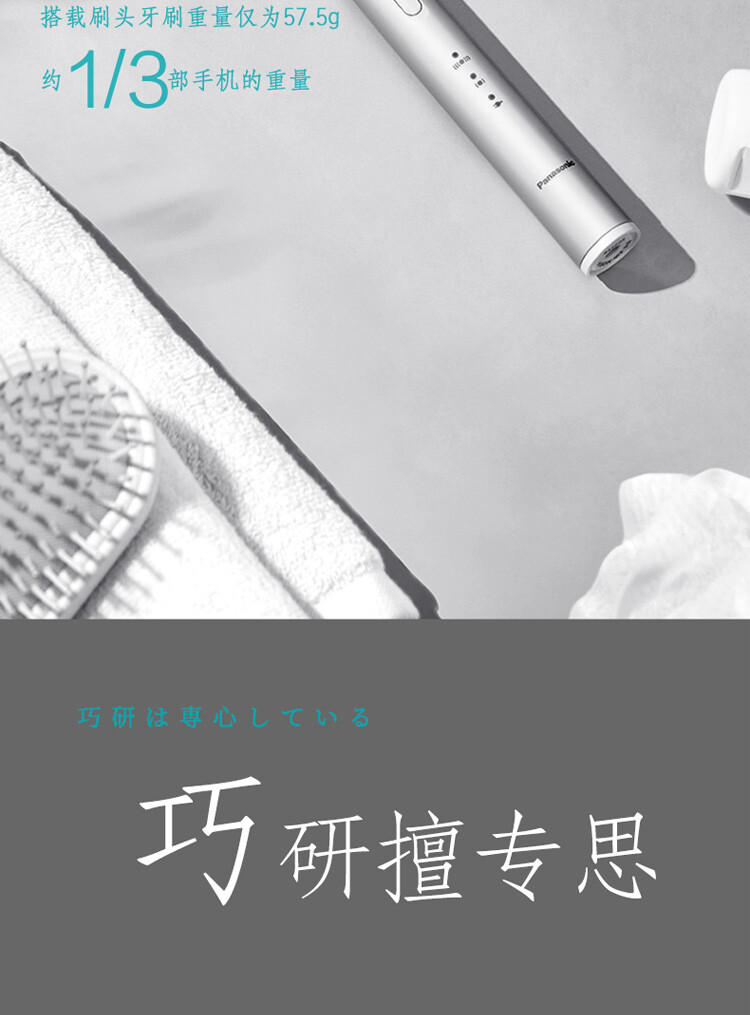 搭載刷頭牙刷重量僅為 57.5g,約 1/3 部手機的重量