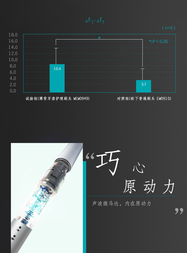 薄背刷頭更易深入口腔深處,後臼牙潔淨率提升 40%