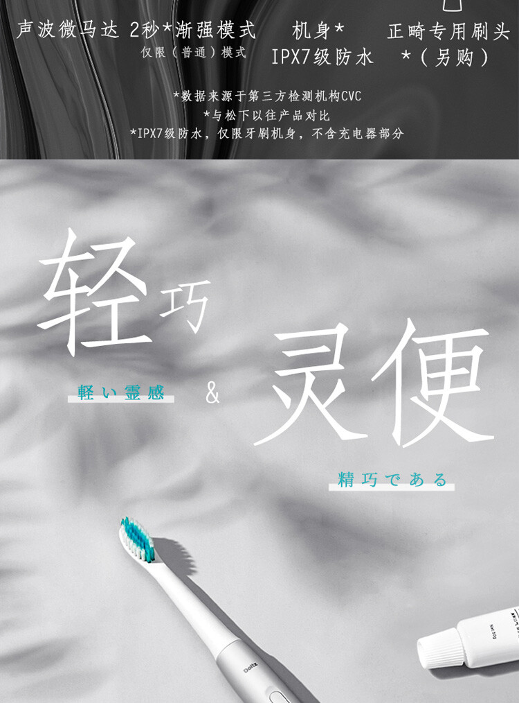 輕巧便攜|0.02 mm 柔軟刷毛|新型升級薄背刷頭|日式設計