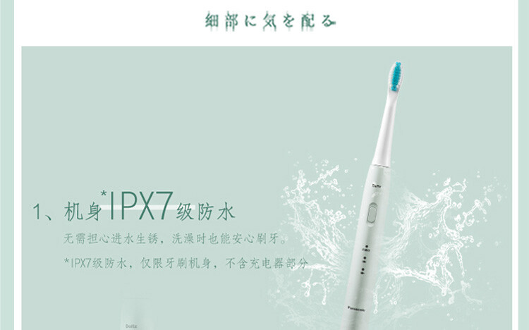 無需擔心進水生鏽,洗澡時也能安心刷牙。 *IPX7 級防水僅限牙刷機身,不含充電器部分。