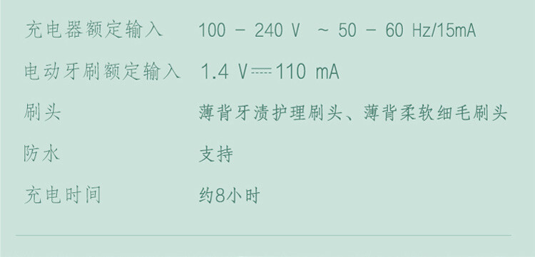 ・電動牙刷額定輸入:1.4V=110mA