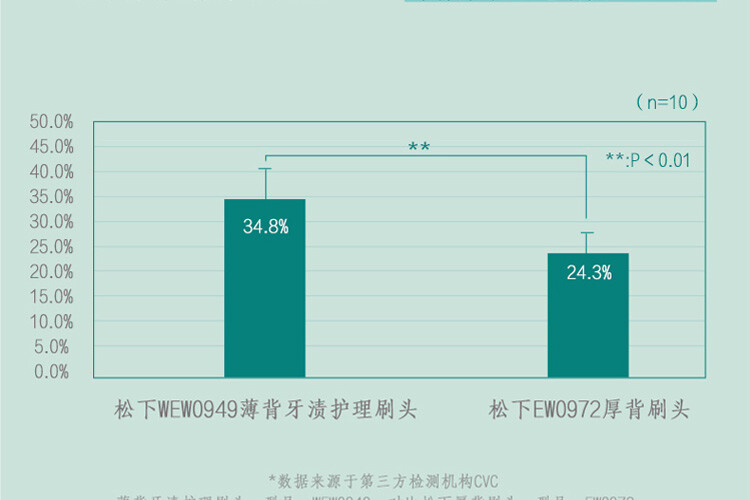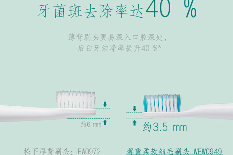 薄背刷頭更易深入口腔深處,後臼牙潔淨率提升 40%