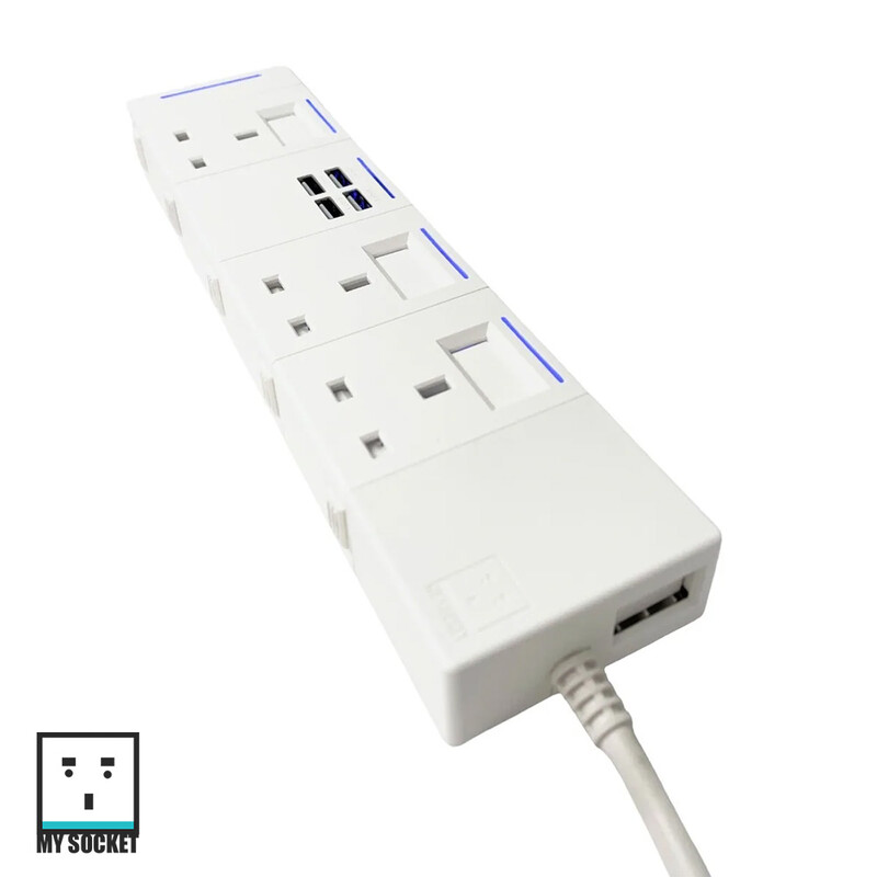 此組合為3+1組合,包括開關組合 x 1,三腳插頭 x 3, 4個USB插頭組合 x 1。*需配合頭及尾模組使用*