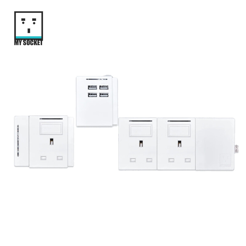 無論USB-A、USB-C定13A 英式插腳,依你所需選擇, 砌出你最理想嘅模組,最多更可砌出10個模組!