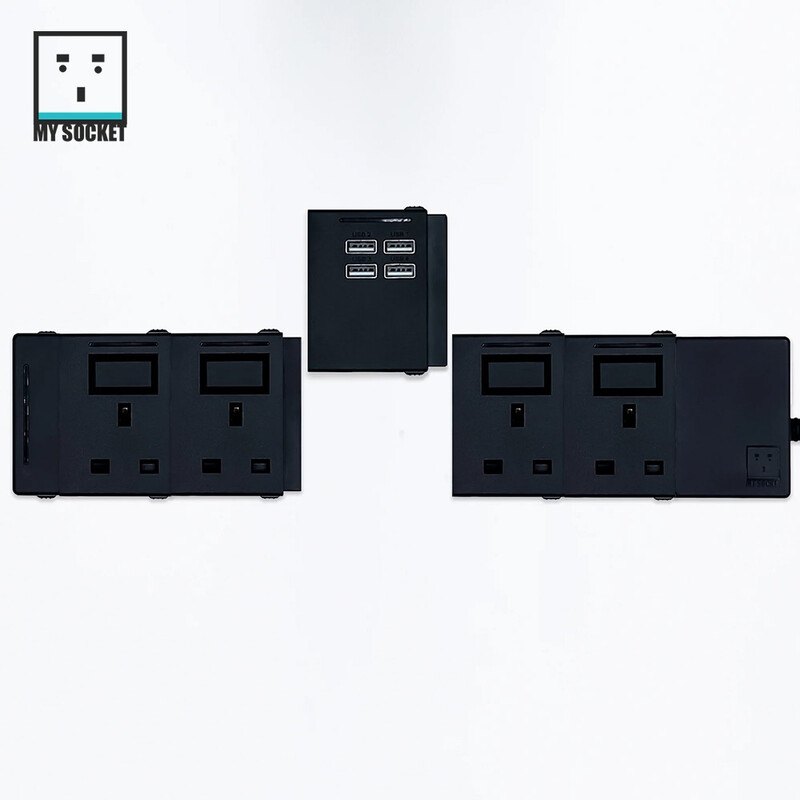 無論USB-A、USB-C定13A 英式插腳,依你所需選擇, 砌出你最理想嘅模組,最多更可砌出10個模組!