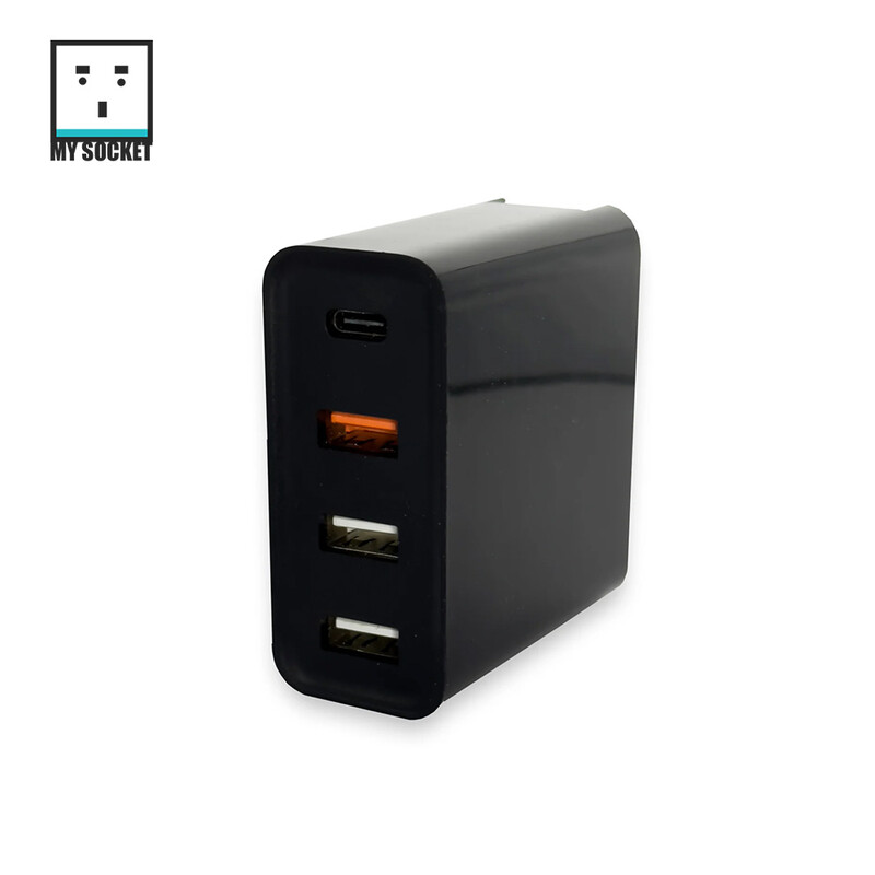 配備了一個USB-C和三個USB-A插孔,可同時為多個設備提供48W快速充電。無論是智能手機、平板電腦還是其他充電需求,這個插頭都能滿足您的要求。