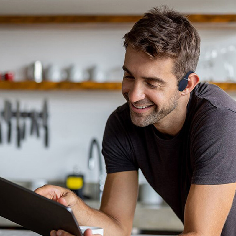 同樣的技術和開放設計也意味著您的耳朵裡不再有浸滿汗水的耳塞,為您提供更安全的聆聽體驗和與鍛煉夥伴的輕鬆溝通。