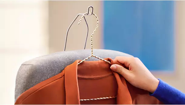 頂部掛鉤方便您在垂直蒸熨衣物或存放衣物時掛放衣架。不使用或水平熨燙時,頂部掛鉤可輕鬆摺疊。