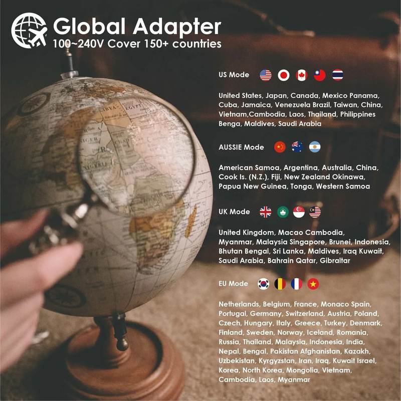 ・4 個轉換插頭,支援 150+ 國家使用